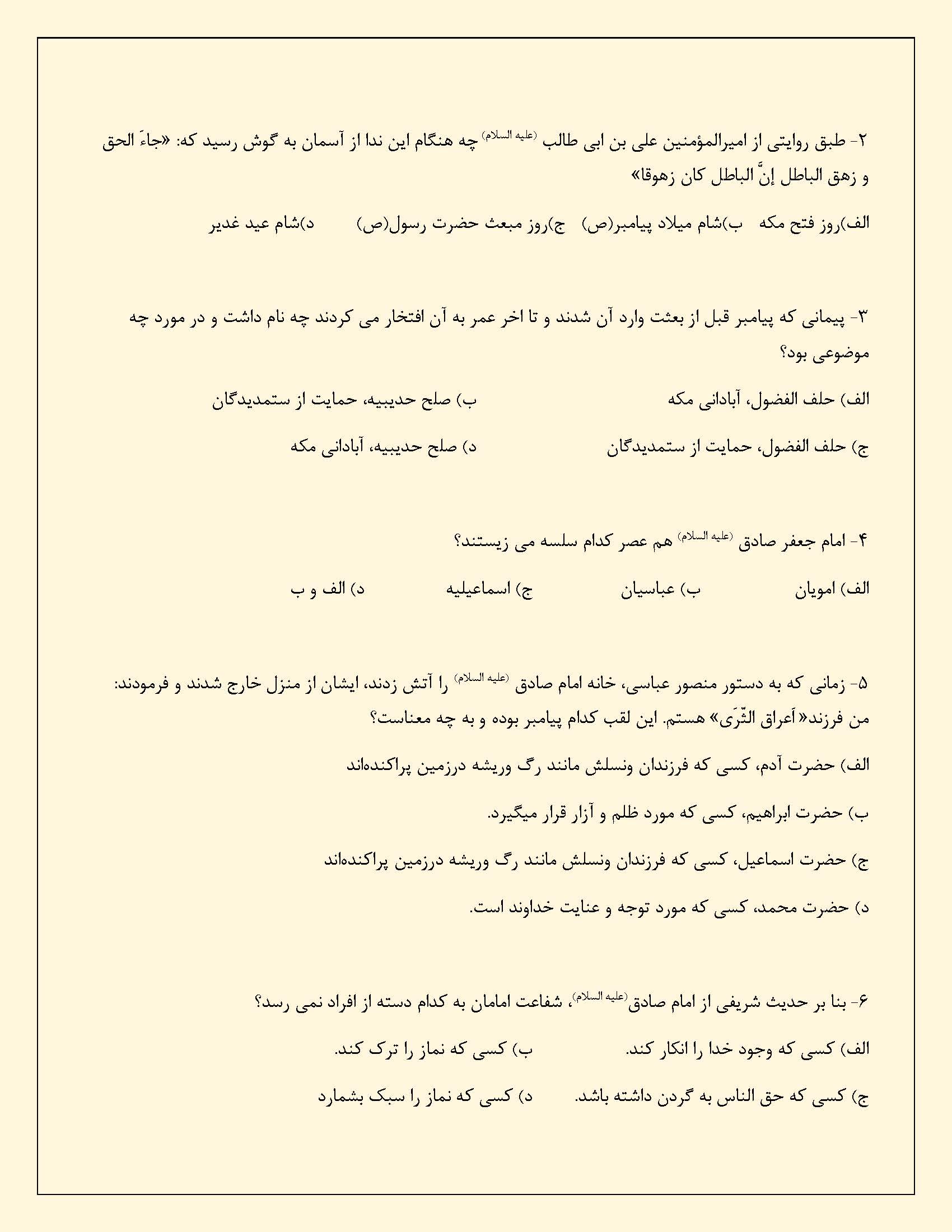 مسابقه پیامکی به مناسبت میلاد پیامبر اکرم(صلی الله علیه و آله) و امام صادق (علیه السلام) ویژه همکاران سازمان مرکزی
